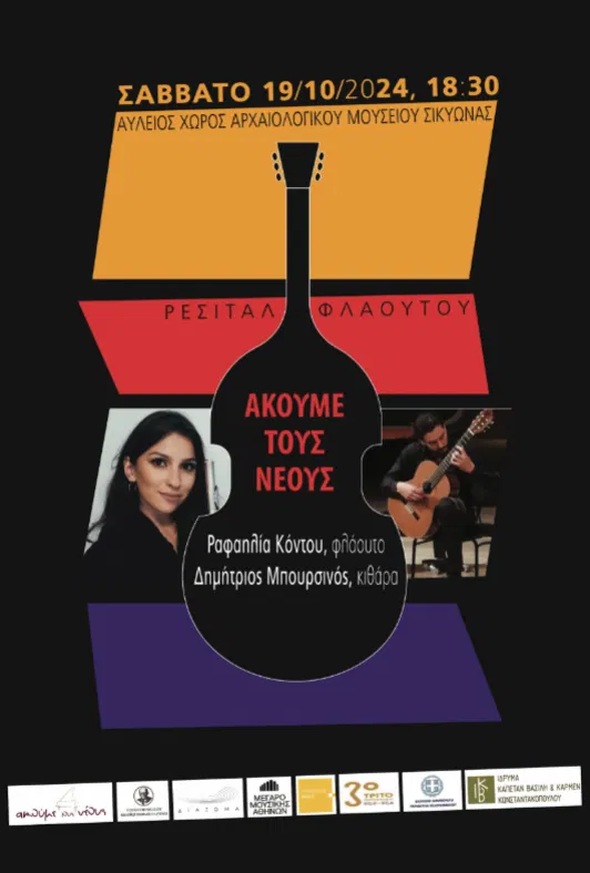 - Σάββατο 19 Οκτωβρίου: Ρεσιτάλ φλάουτου στον αύλειο χώρο του Αρχαιολογικού Μουσείου Σικυώνας. Στην κιθάρα συνόδεψε ο νέος και ανερχόμενος κιθαρίστας Δημήτριος Μπουρσινός. Η συναυλία πραγματοποιήθηκε σε συνεργασία με την ΕΦΑ Κορινθίας και σε χώρο ενδιαφέροντος της Vinci/Ολυμπία Οδός.
